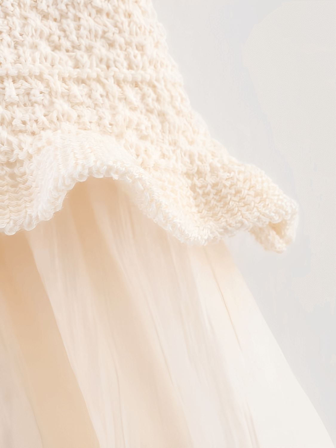O tweed costuma ter toque mais encorpado na blusa. A saia é leve e fluida, equilibrando conforto e elegância.